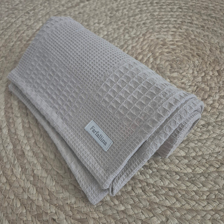 Esta manta waffle 100% algodón combina textura suave y ligereza para brindar un abrigo ideal en climas templados. Con un tamaño aproximado de 110 x 70 cms., es perfecta para envolver a los bebés con delicadeza o usar como piecera decorativa en su cuna o cama de transición. Su tejido transpirable asegura comodidad sin sobrecalentamiento, haciendo de esta manta un accesorio imprescindible para el cuidado diario con un toque de frescura y suavidad.